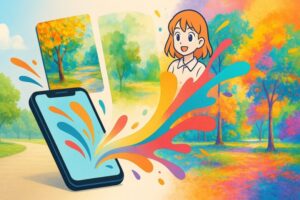 iPhoneやiPad、スマートフォンの背面にリングを貼りつけ、